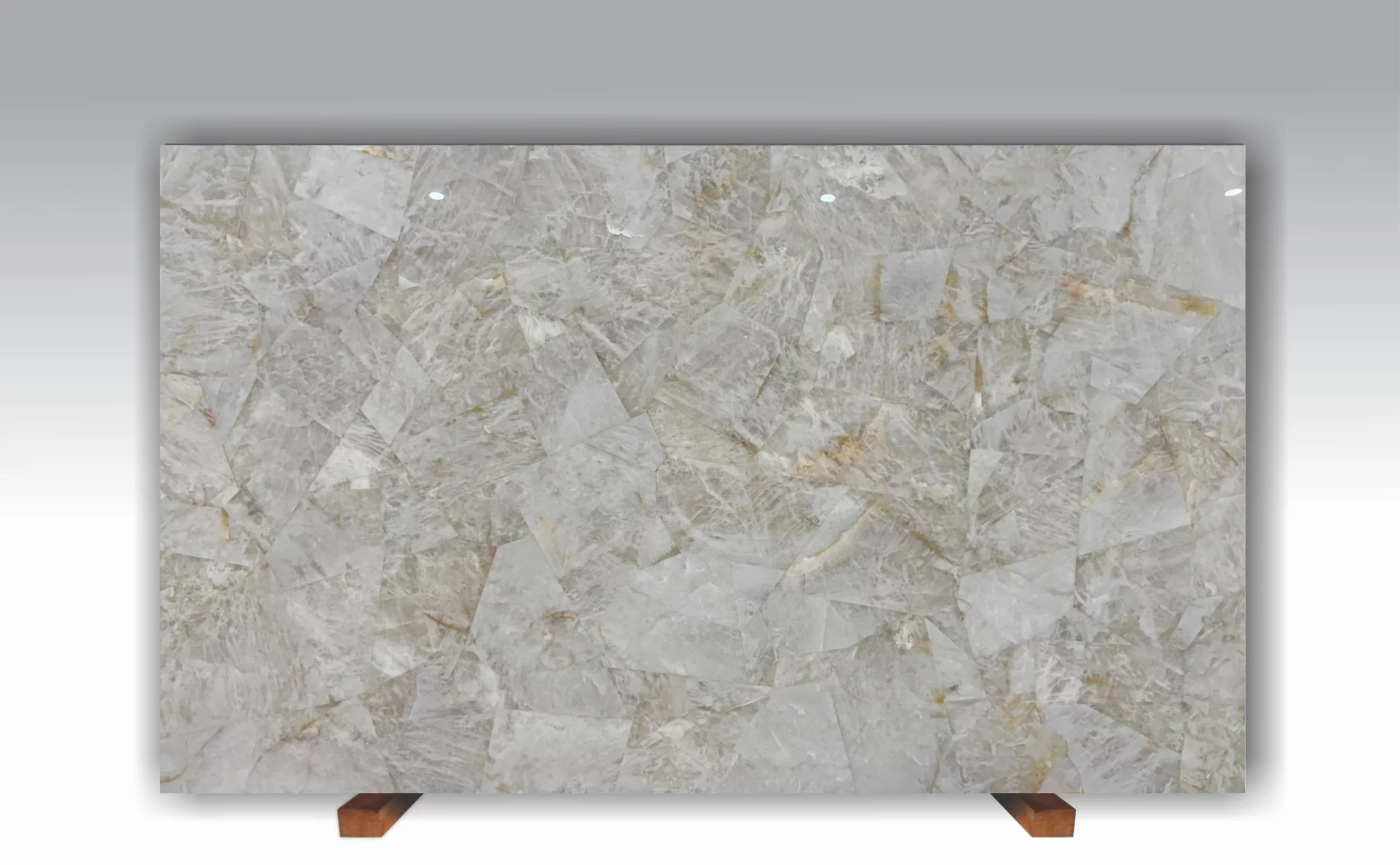 Handcrafted assembly : At GVA Stones, crystals are assembled by hand to ensure harmonious visual continuity and a perfectly controlled finish. This craftsmanship allows the light and natural purity of the stone to be fully exploited.
