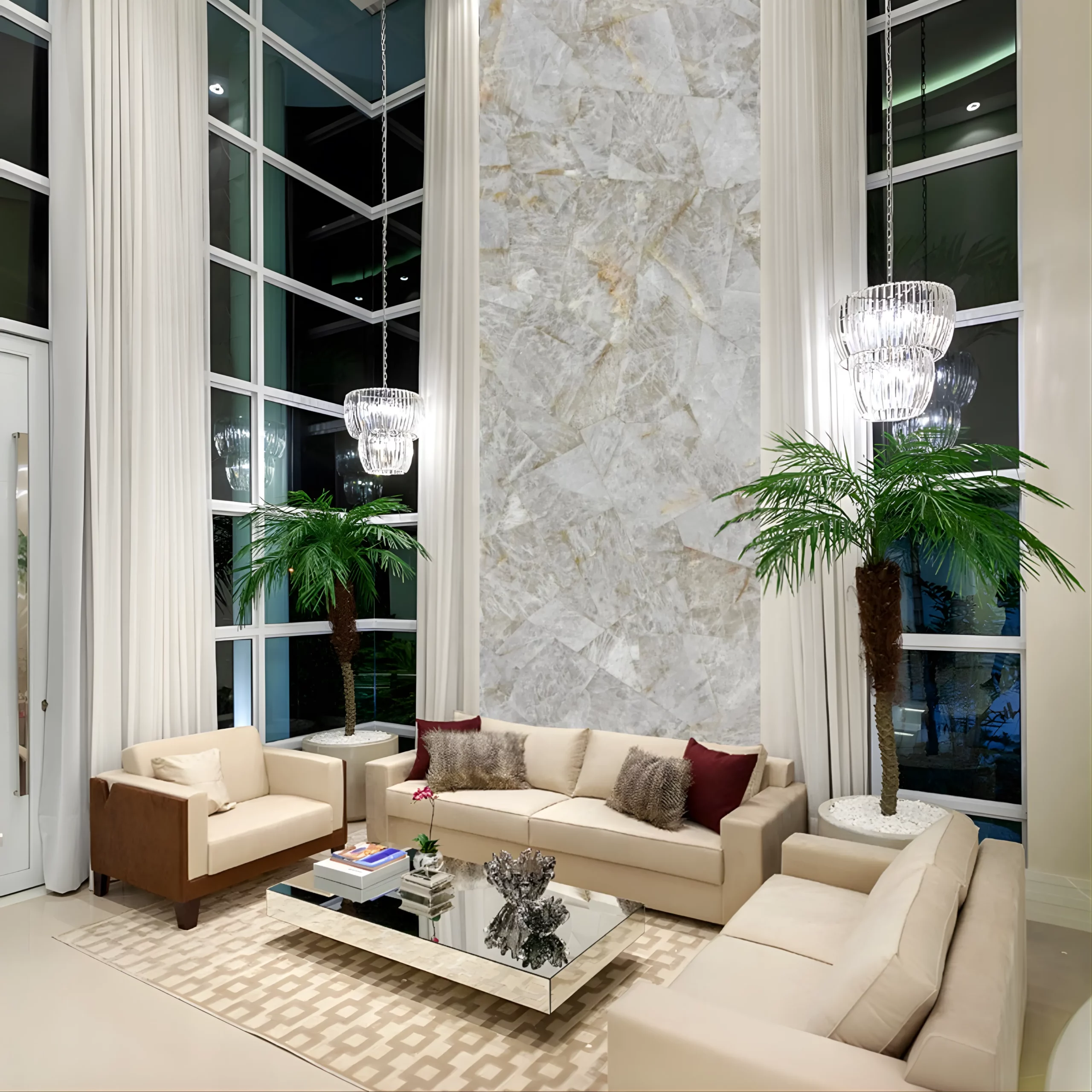 Walls and panels : As wall cladding or decorative panels, classic crystal creates luminous and refined surfaces. It is particularly popular in contemporary spaces, entrance halls, double-height living rooms, or environments requiring subtle light enhancement.