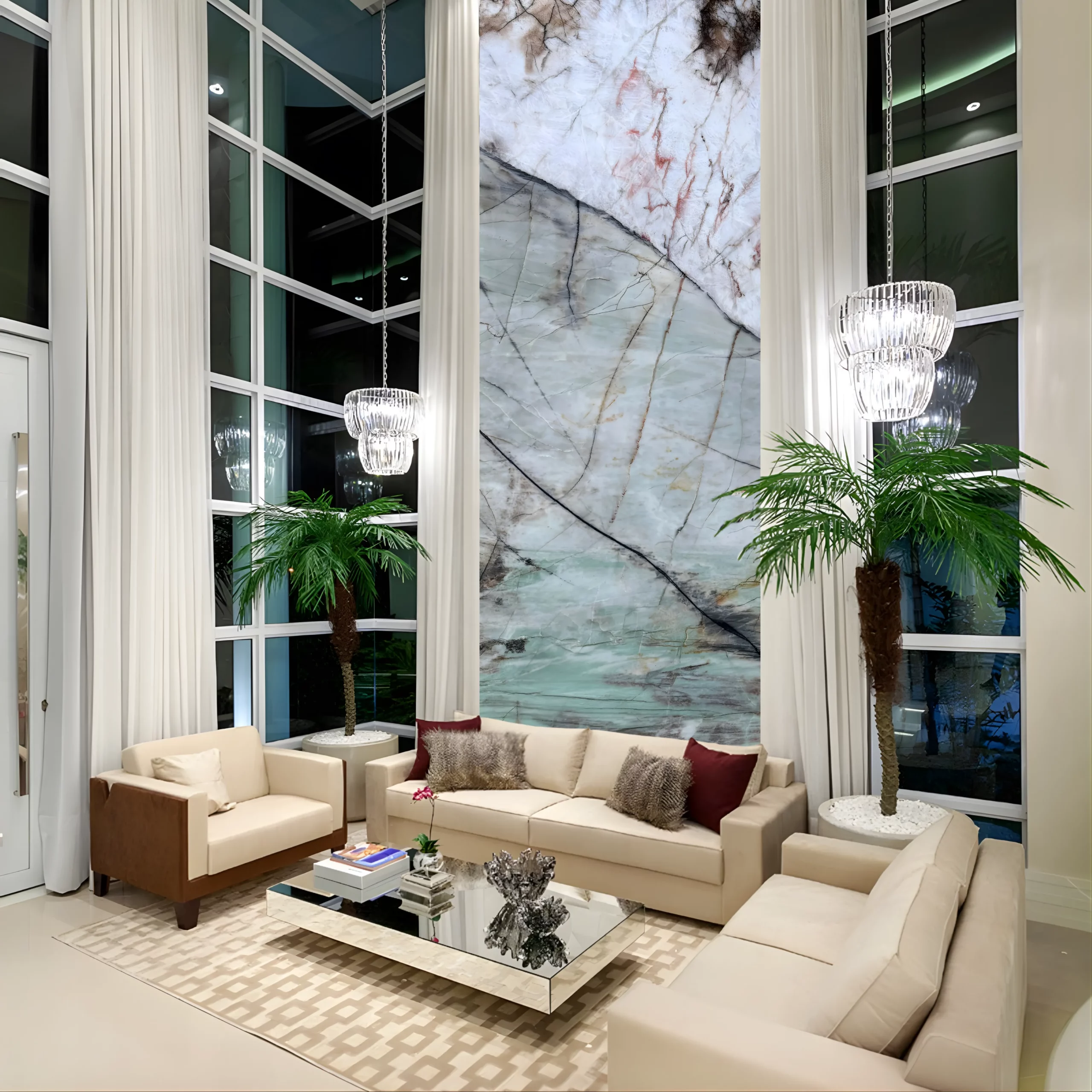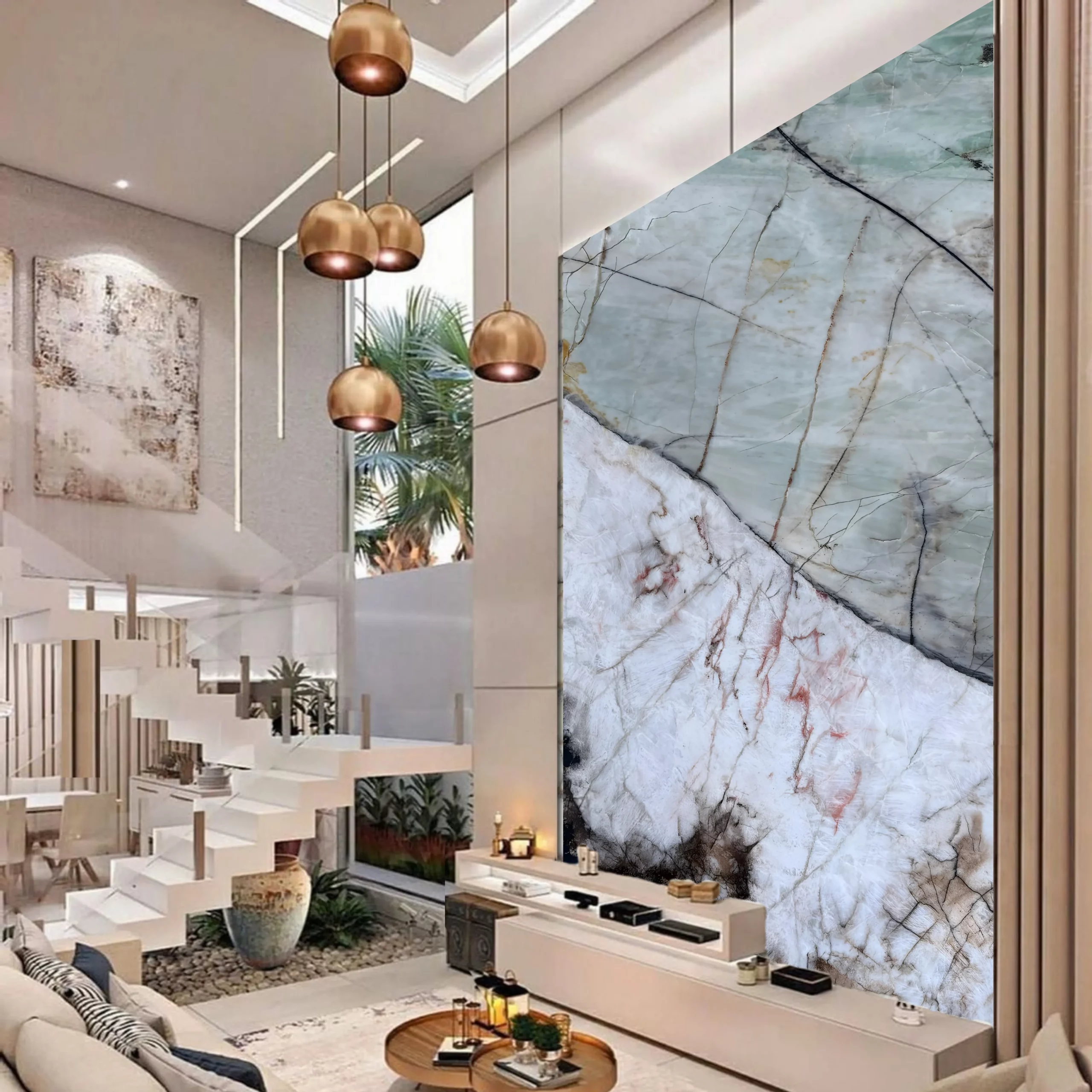 Walls and panels : Used as wall cladding or decorative panels, green quartz crystal adds a natural and elegant touch to interior spaces. It is ideal for contemporary living rooms, entrance halls, hotels, and commercial spaces where a soothing, high-end atmosphere is desired.